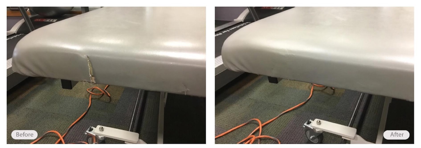 We have highly-specialized products and techniques that specifically cater to restoring damage on examination tables and chairs in hospitals, medical clinics, dental clinics, veterinary clinics, massage, physical therapy offices and more. Cracks, rips, and tears can all be repaired for a fraction of the cost of replacement. Our insured and professionally-trained technicians are mobile and can come to you and help keep the downtime of damaged medical equipment to a minimum.