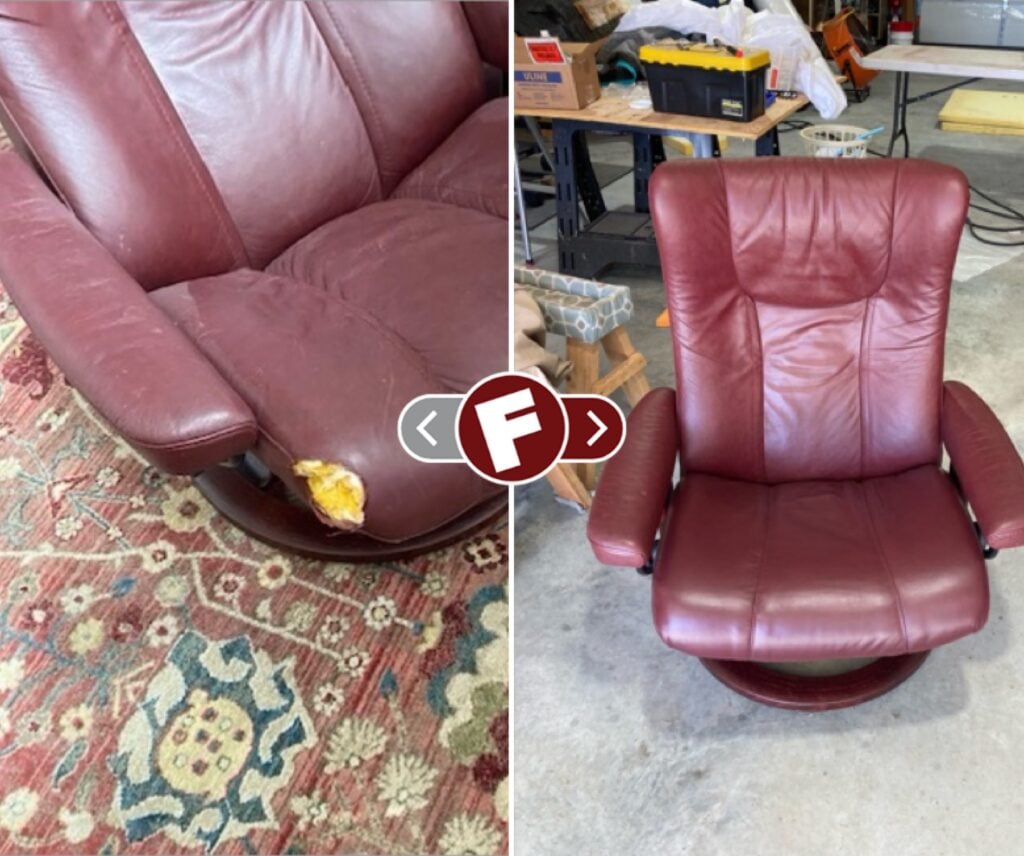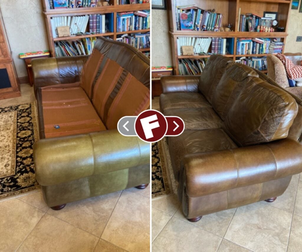 Damaged leather couches, chairs, and sofas, whether torn, worn, ripped or faded can be restored by Fibrenew. Blemishes on leather furniture such as burns, stains, holes, and cuts can also be renewed. If you’re looking to change the color of your leather furniture, turn to our expert color matching and re-dye services. We offer mobile leather furniture repair service to your home or business.