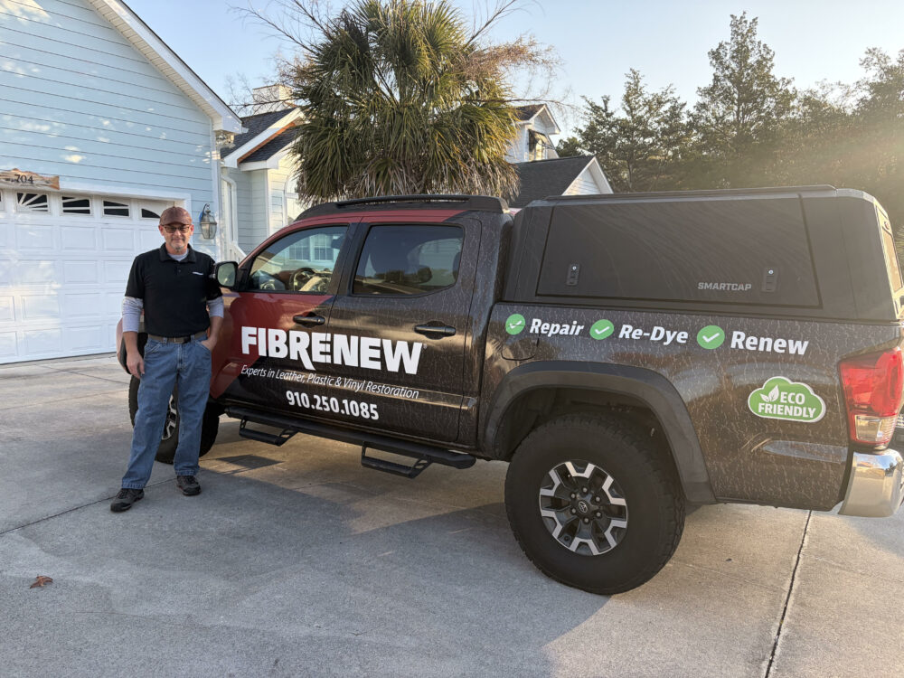 Fibrenew is a mobile service that provides leather, plastic and vinyl repair in our clientele’s homes and businesses. Our franchisees’ vehicles are fully equipped to handle all types of restoration scenarios we see in the field every day. From pet damage on leather furniture, daily wear and tear in vehicle interiors, cracked vinyl on medical furniture, holes in restaurant seating to weather damage in boat seats, and discoloration and blemishes in plane interiors.