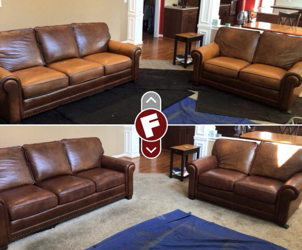 Damaged leather couches, chairs, and sofas, whether torn, worn, ripped or faded can be restored by Fibrenew. Blemishes on leather furniture such as burns, stains, holes, and cuts can also be renewed. If you’re looking to change the color of your leather furniture, turn to our expert color matching and re-dye services. We offer mobile leather furniture repair service to your home or business.