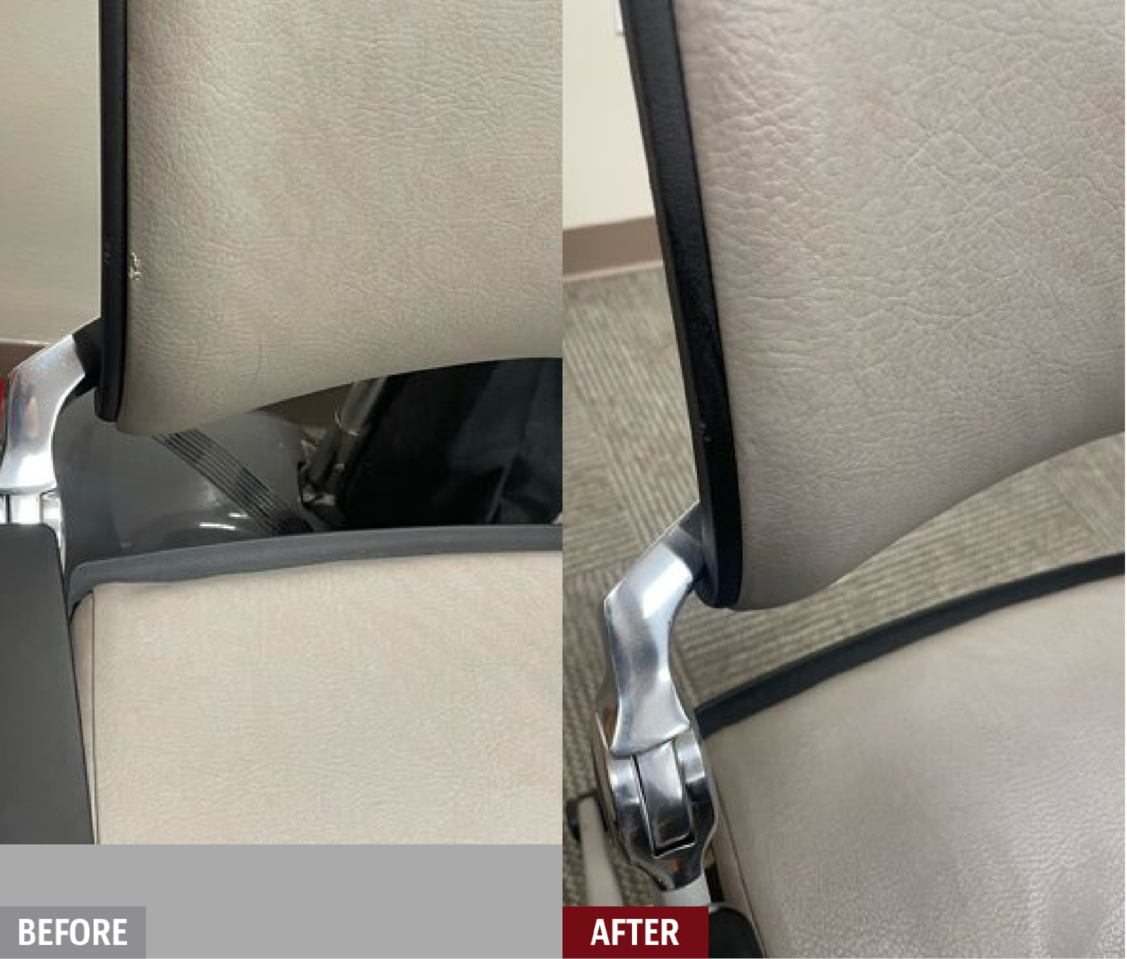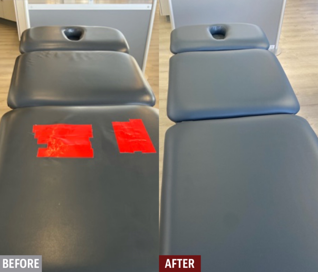We have highly-specialized products and techniques that specifically cater to restoring damage on examination tables and chairs in hospitals, medical clinics, dental clinics, veterinary clinics, massage, physical therapy offices and more. Cracks, rips, and tears can all be repaired for a fraction of the cost of replacement. Our insured and professionally-trained technicians are mobile and can come to you and help keep the downtime of damaged medical equipment to a minimum.