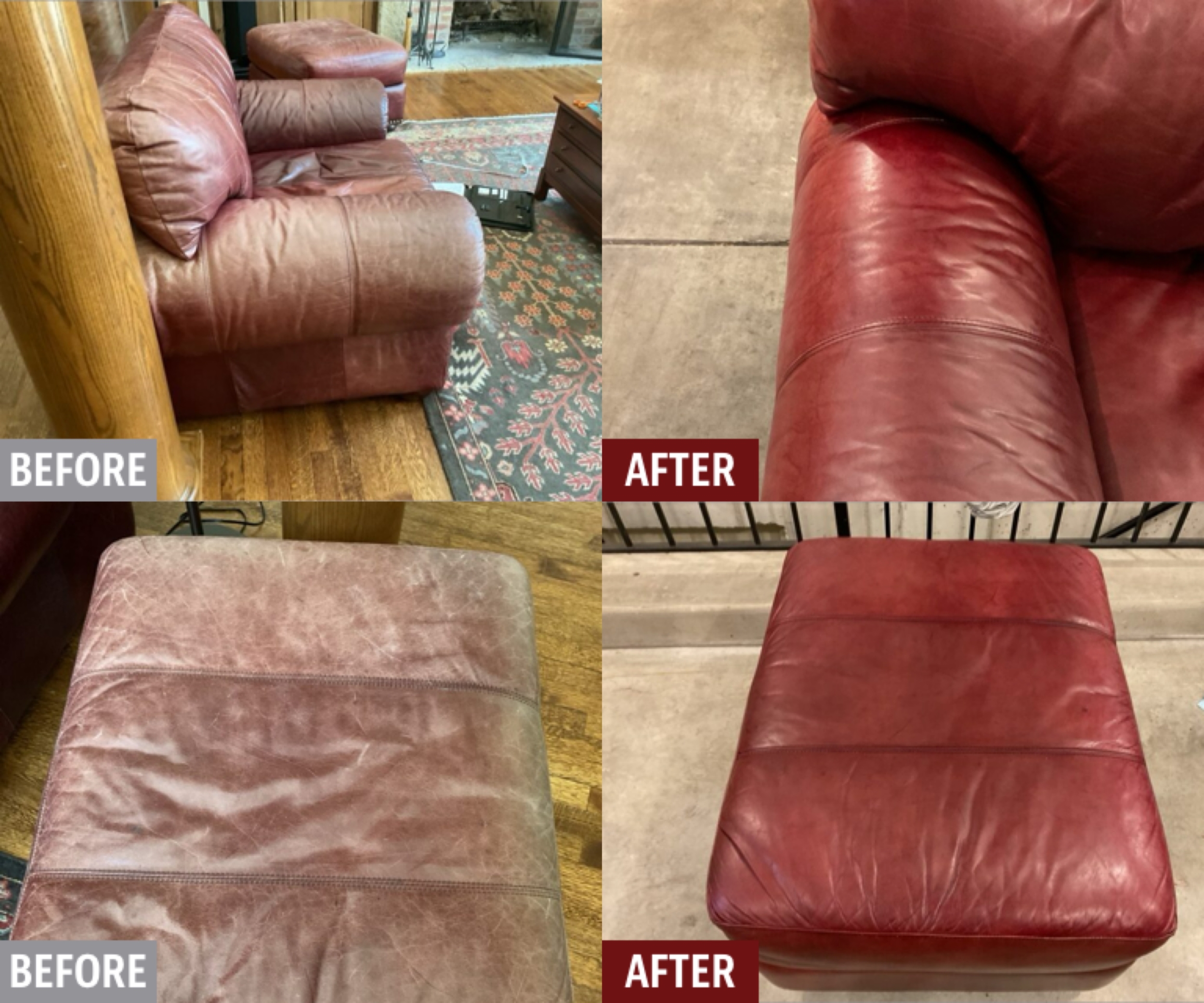 Damaged leather couches, chairs, and sofas, whether torn, worn, ripped or faded can be restored by Fibrenew. Blemishes on leather furniture such as burns, stains, holes, and cuts can also be renewed. If you’re looking to change the color of your leather furniture, turn to our expert color matching and re-dye services. We offer mobile leather furniture repair service to your home or business.