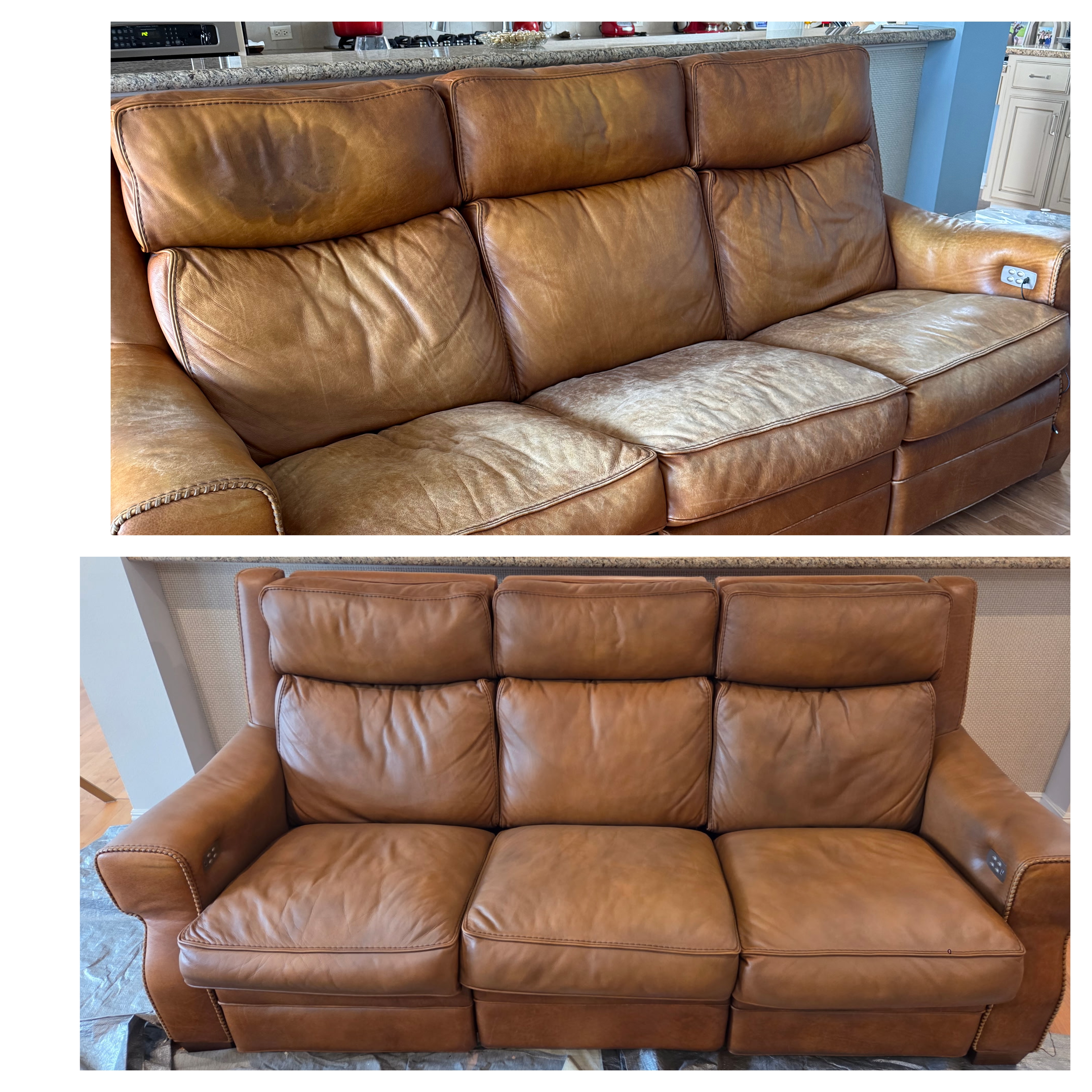 Damaged leather couches, chairs, and sofas, whether torn, worn, ripped or faded can be restored by Fibrenew. Blemishes on leather furniture such as burns, stains, holes, and cuts can also be renewed. If you’re looking to change the color of your leather furniture, turn to our expert color matching and re-dye services. We offer mobile leather furniture repair service to your home or business.