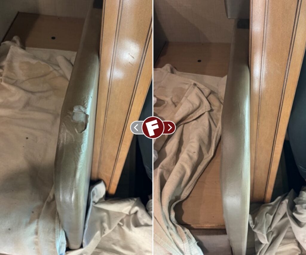 Repair tan/gray linoleum floor damaged by the slider in a 2021 Keystone Voltage 5th wheel RV