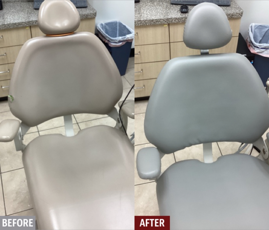 Dentist office had 3 patient chairs and one technician stool which needed the vinyl replaced due to damage one old age. Also added a layer of foam to make the chairs a bit more comfortable for the patients. Work completed over the weekend as to not impact the operation of the office at all.