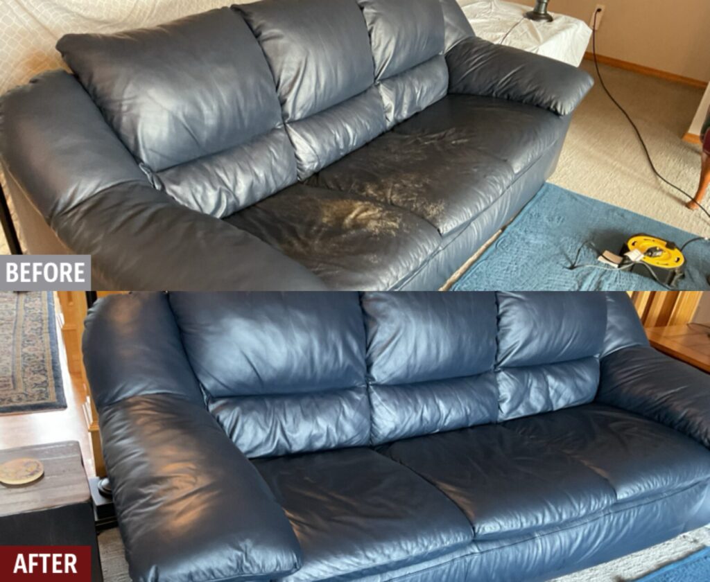 Damaged leather couches, chairs, and sofas, whether torn, worn, ripped or faded can be restored by Fibrenew. Blemishes on leather furniture such as burns, stains, holes, and cuts can also be renewed. If you’re looking to change the color of your leather furniture, turn to our expert color matching and re-dye services. We offer mobile leather furniture repair service to your home or business.