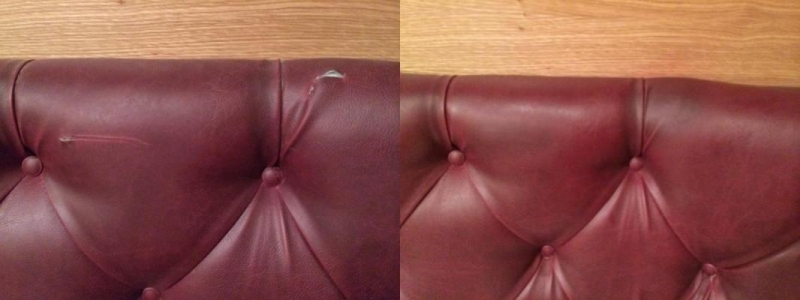 A year ago, fire swept through this popular mid-town eatery. During the post-fire renovations, one of their new vinyl booths was damaged when something heavy fell on top of it. The result: scratches and tears that went all the way through the leather-like vinyl. Fibrenew Manhattan was able to repair the ripped vinyl seating on-site, letting the customer avoid the time and expense of replacing it. Another low-cost vinyl repair--and another satisfied Fibrenew client
