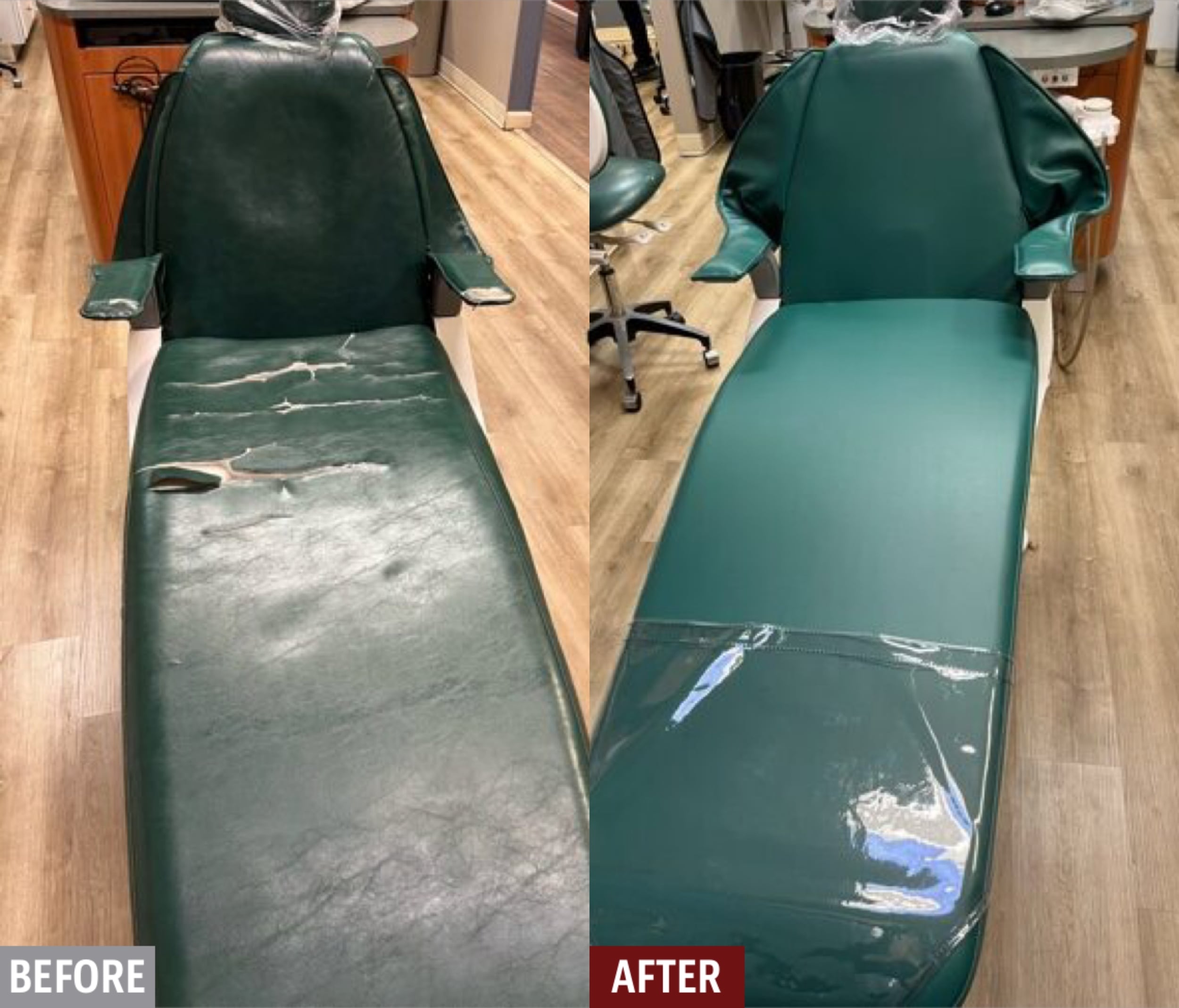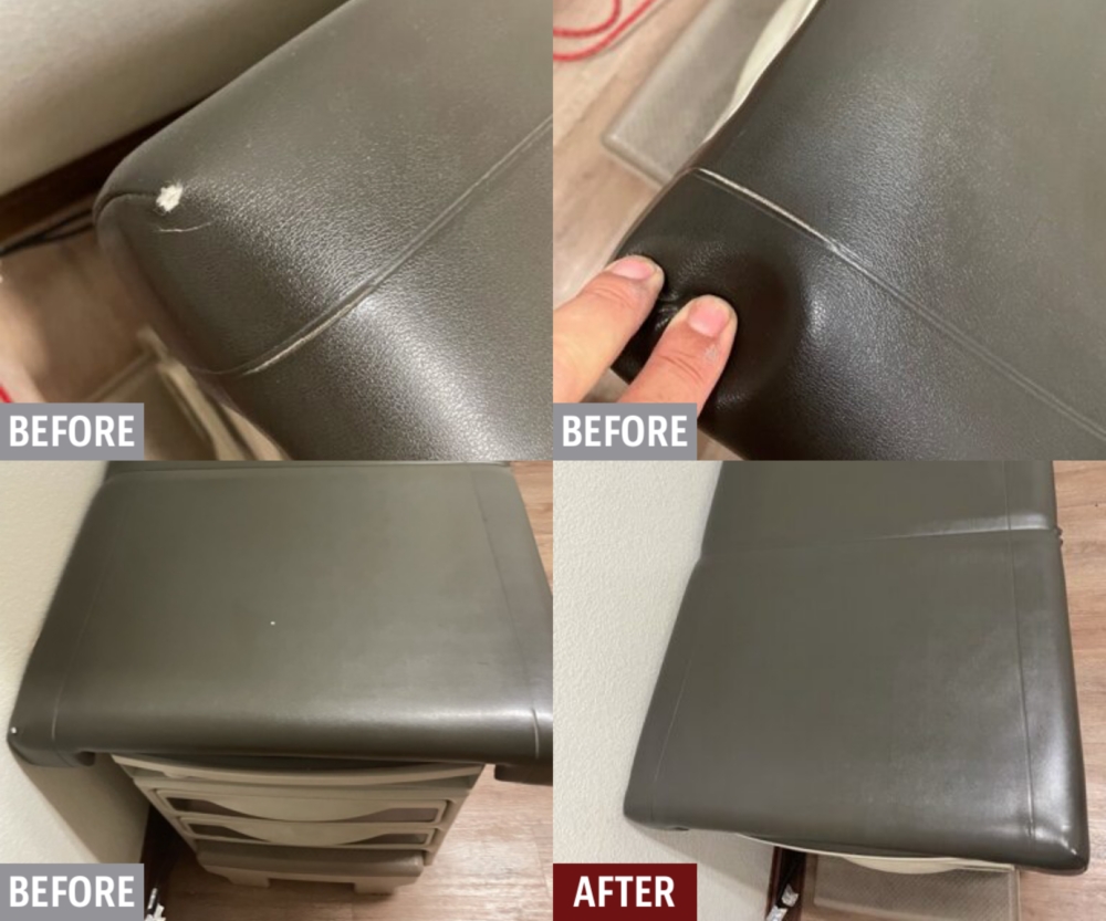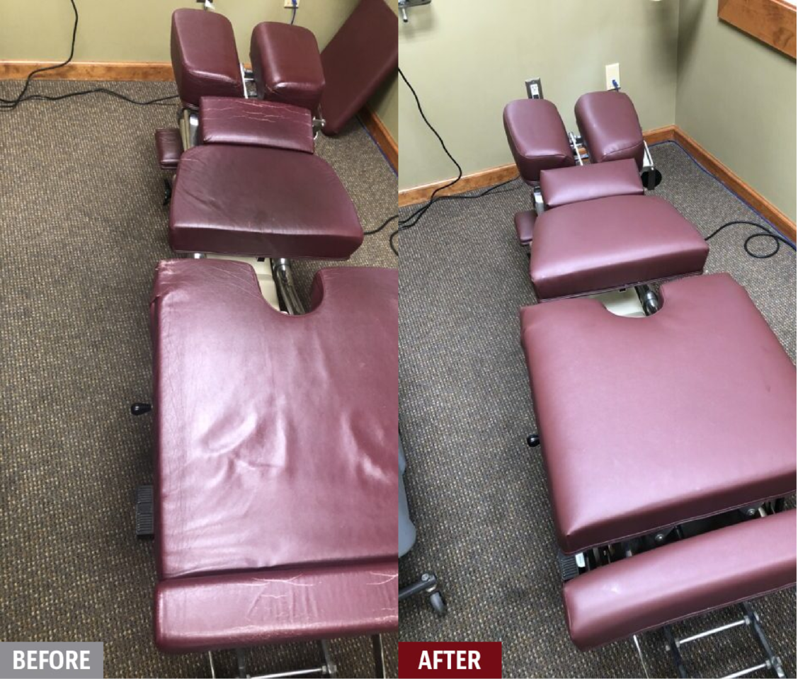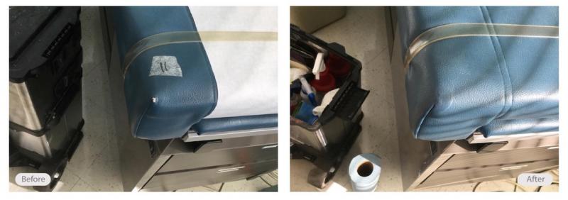 We have highly-specialized products and techniques that specifically cater to restoring damage on examination tables and chairs in hospitals, medical clinics, dental clinics, veterinary clinics, massage, and physical therapy offices, and more. Cracks, rips, tears, and burns can all be repaired for a fraction of the cost of replacement. Our insured and professionally-training technicians are mobile and can come to you.