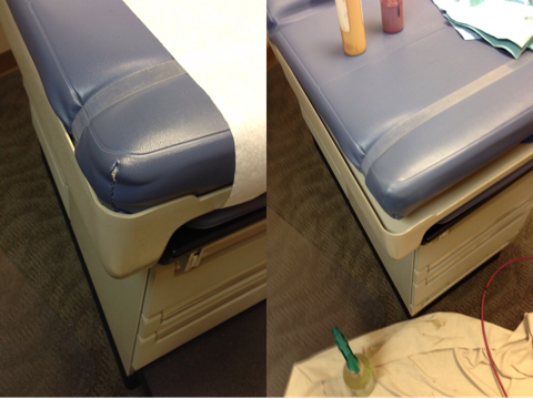 Replaced and died to match a new piece of leather on the arm. The used the old piece of leather from the arm to repair the seat cushion that was also ... [read more...]