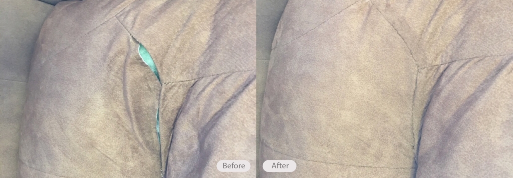 Seam repair on micro fiber sofa