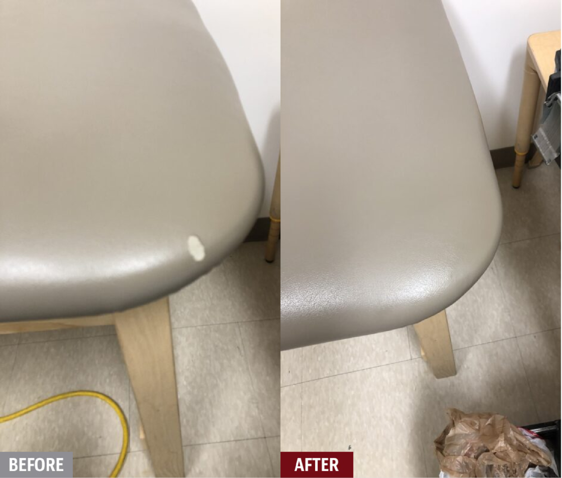 The medical environment is more about sanitizing and sterilizing than cleaning. Wiping with a Cavi wipe between patients does not avoid soil buid. In doing repairs we find virtually all medical and dental vinyl to be very heavily soiled. The solution is a clean and protect serice from Fibrenew North Columbus.
