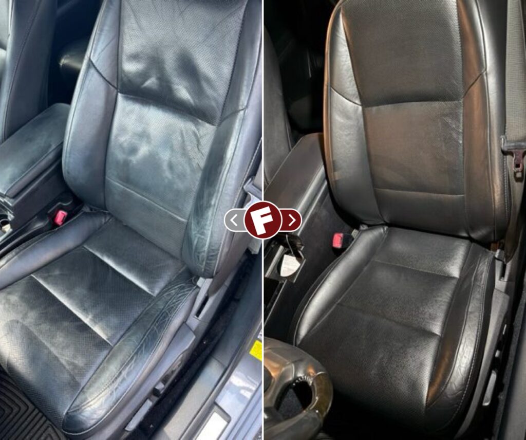 The passenger seat of a 2021 Toyota RAV4 was heavily stained with coffee and food. Accidents happen, and that’s why FibrenewNCD was called to clean the mess.