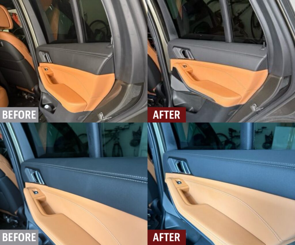 FibrenewNCD was tasked with removing stain marks from the passenger rear door panel of a 24 BMW X5. The stains were completely removed, restoring the door panel to its original condition.