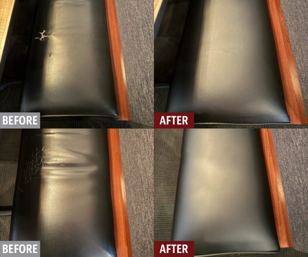 The vinyl on the five booth seats at the Cool Springs restaurant was cracking, so FibrenewNCD was tasked with replacing the covers and making them look new again.