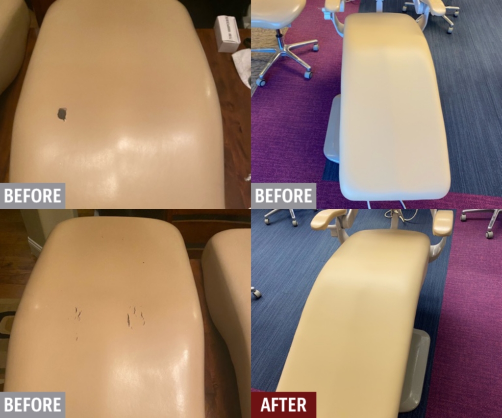 We have highly-specialized products and techniques that specifically cater to restoring damage on examination tables and chairs in hospitals, medical clinics, dental clinics, veterinary clinics, massage, physical therapy offices and more. Cracks, rips, and tears can all be repaired for a fraction of the cost of replacement. Our insured and professionally-trained technicians are mobile and can come to you and help keep the downtime of damaged medical equipment to a minimum.