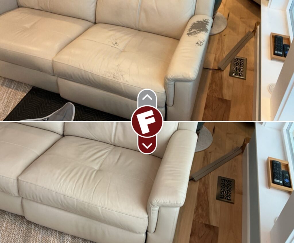 Damaged leather couches, chairs, and sofas, whether torn, worn, ripped or faded can be restored by Fibrenew. Blemishes on leather furniture such as burns, stains, holes, and cuts can also be renewed. If you’re looking to change the color of your leather furniture, turn to our expert color matching and re-dye services. We offer mobile leather furniture repair service to your home or business.