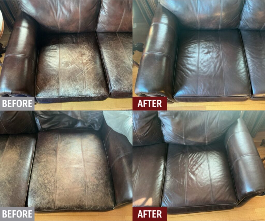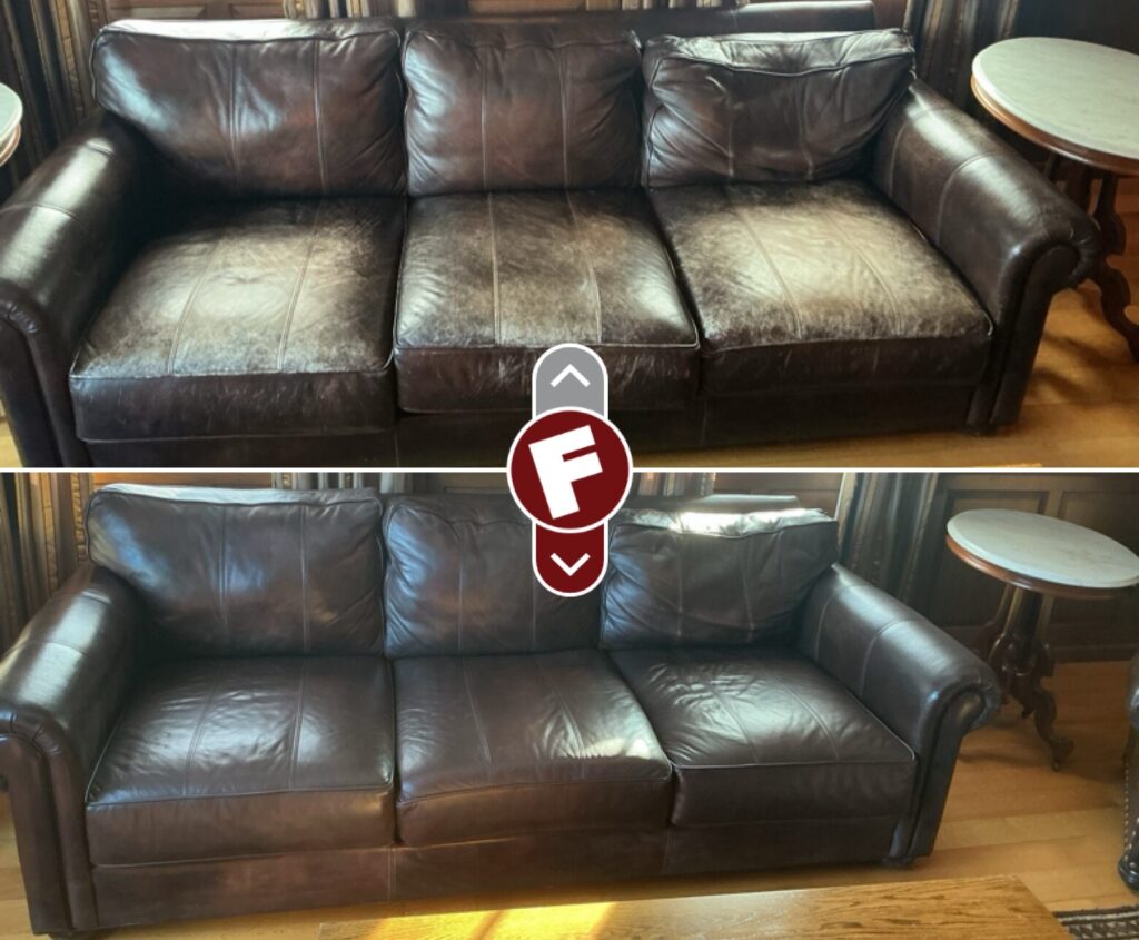 Damaged leather couches, chairs, and sofas, whether torn, worn, ripped or faded can be restored by Fibrenew. Blemishes on leather furniture such as burns, stains, holes, and cuts can also be renewed. If you’re looking to change the color of your leather furniture, turn to our expert color matching and re-dye services. We offer mobile leather furniture repair service to your home or business.
