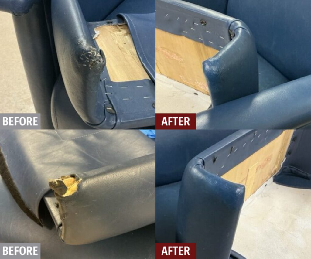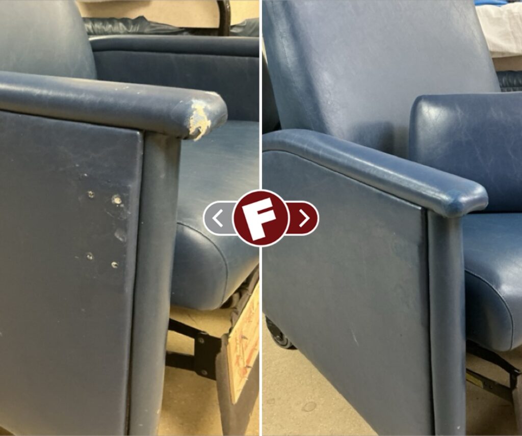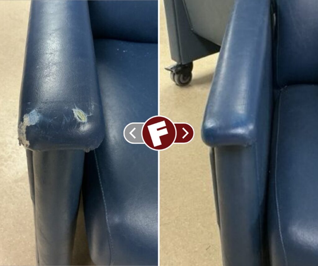 We have highly-specialized products and techniques that specifically cater to restoring damage on examination tables and chairs in hospitals, medical clinics, dental clinics, veterinary clinics, massage, physical therapy offices and more. Cracks, rips, and tears can all be repaired for a fraction of the cost of replacement. Our insured and professionally-trained technicians are mobile and can come to you and help keep the downtime of damaged medical equipment to a minimum.