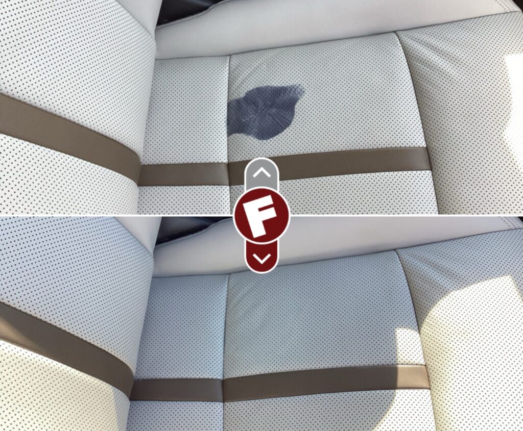 COVID strikes leather seat as result of hand sanitizer bottle breaking open. Fibrenew is essential and came to the rescue.