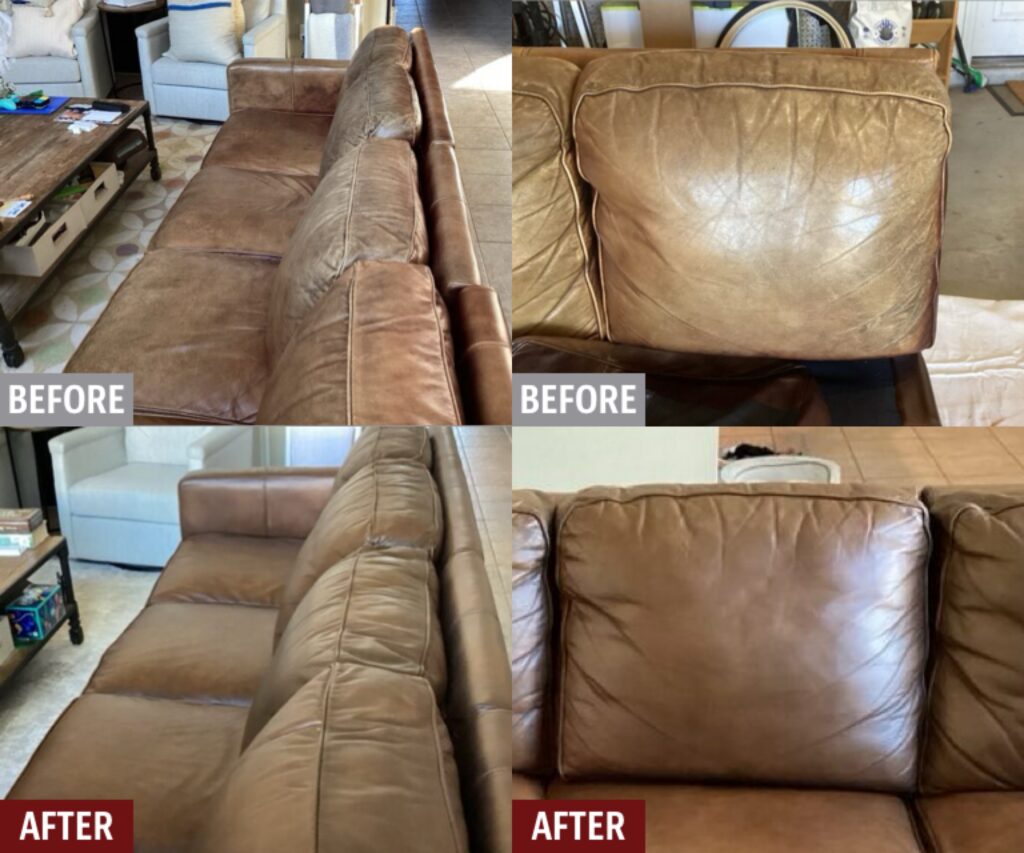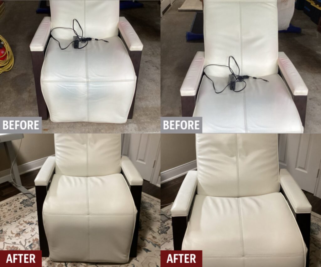 Damaged leather couches, chairs, and sofas, whether torn, worn, ripped or faded can be restored by Fibrenew. Blemishes on leather furniture such as burns, stains, holes, and cuts can also be renewed. If you’re looking to change the color of your leather furniture, turn to our expert color matching and re-dye services. We offer mobile leather furniture repair service to your home or business.