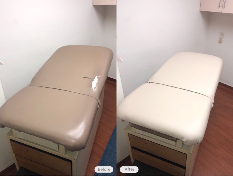 We have highly-specialized products and techniques that specifically cater to restoring damage on examination tables and chairs in hospitals, medical clinics, dental clinics, veterinary clinics, massage, physical therapy offices and more. Cracks, rips, and tears can all be repaired for a fraction of the cost of replacement. Our insured and professionally-trained technicians are mobile and can come to you and help keep the downtime of damaged medical equipment to a minimum.