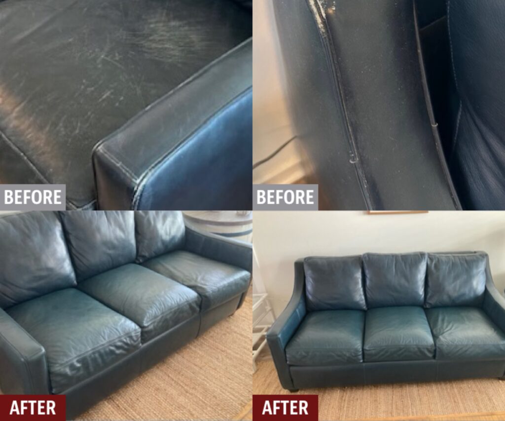 Damaged leather couches, chairs, and sofas, whether torn, worn, ripped or faded can be restored by Fibrenew. Blemishes on leather furniture such as burns, stains, holes, and cuts can also be renewed. If you’re looking to change the color of your leather furniture, turn to our expert color matching and re-dye services. We offer mobile leather furniture repair service to your home or business.