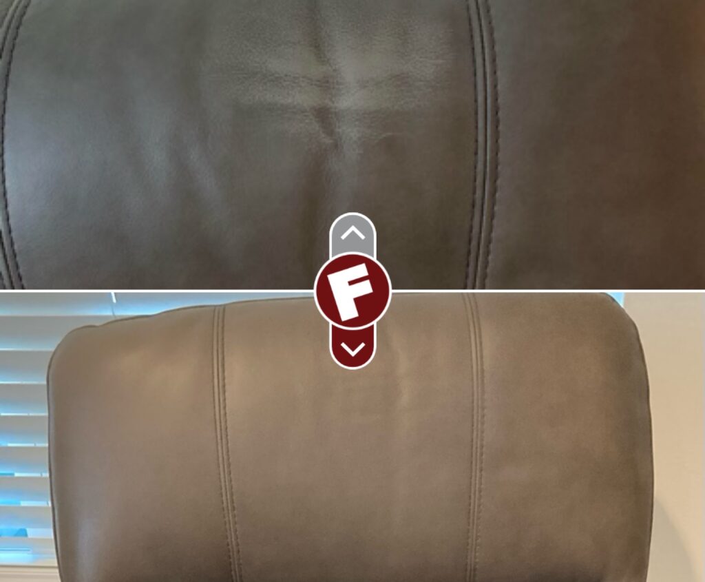 “Our leather chair had what we think was a blueberry mixed with vanilla ice cream stain on the arm. We tried washing it with soap and water but unfortunately the stain remained. We luckily were referred to Fibrenew and Brent came to the rescue! After about an hour of carefully working the leather, the stain was removed! Brent also applied a protective conditioner. Thanks Brent! We highly recommend Fibrenew and will be sure to save their contact info.”